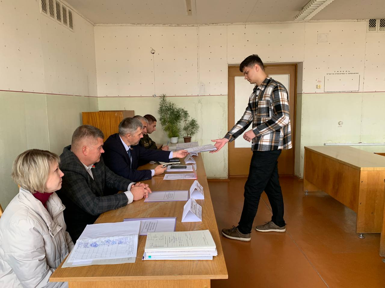 У залу хлопцы ўваходзілі па адным, прычым многія прыкметна хваляваліся, што і нядзіўна для такой важнай падзеі. Некаторыя ж – як, напрыклад, Мікіта Аксяновіч, рапартавалі аб сваім прыбыцці бойка і дакладна – хоць зараз у строй! Члены камісіі, у якую ўваходзяць прадстаўнікі ваеннага камісарыята, раённай улады, ЦРБ, райаддзела міліцыі, заўсёды ўважліва вывучаюць усе нюансы асабістых спраў, бо разумеюць, што на іх ускладзена вялікая адказнасць: накіраваць у армію дастойных грамадзян.