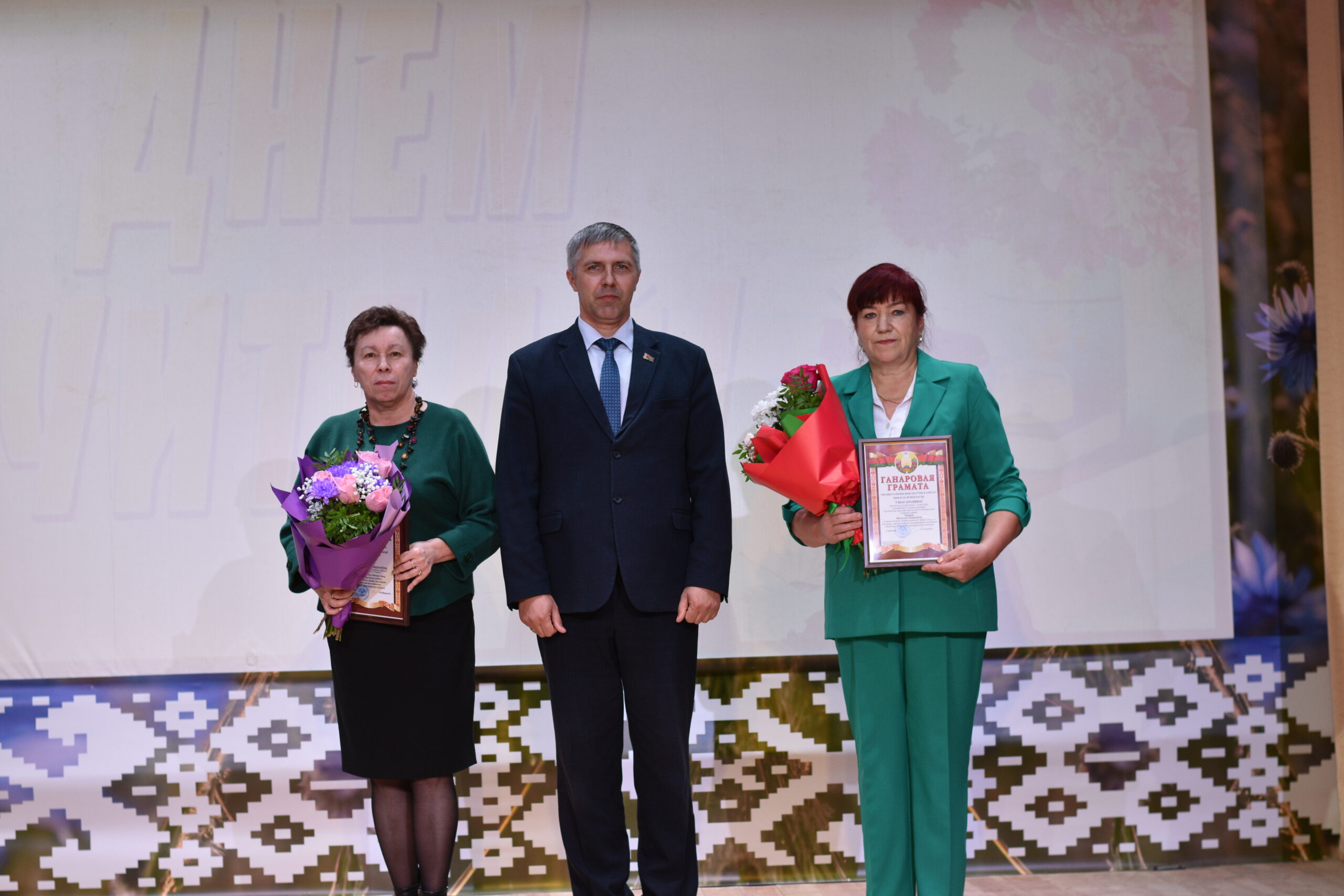 Віншаванні педагогам адрасаваў намеснік старшыні райвыканкама Дзмітрый Пятровіч Цімафееў. Са скульптарамі, у руках якіх – мяккая гліна для стварэння шэдэўраў, сімвалічна параўнала калег начальнік аддзела па адукацыі Людміла Васільеўна Давыдава.
