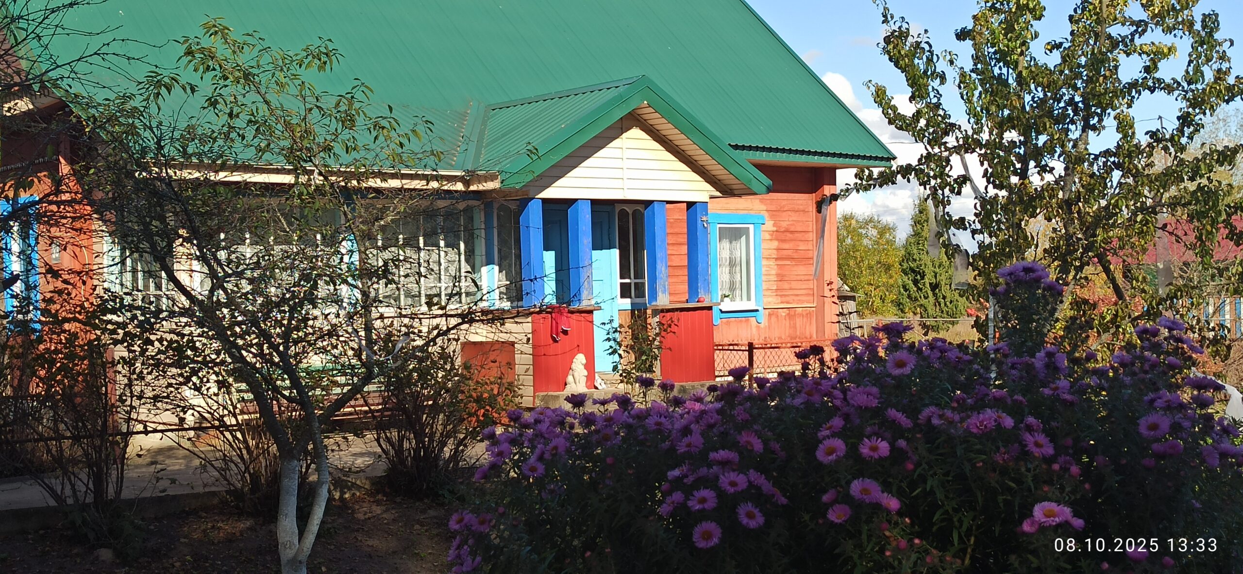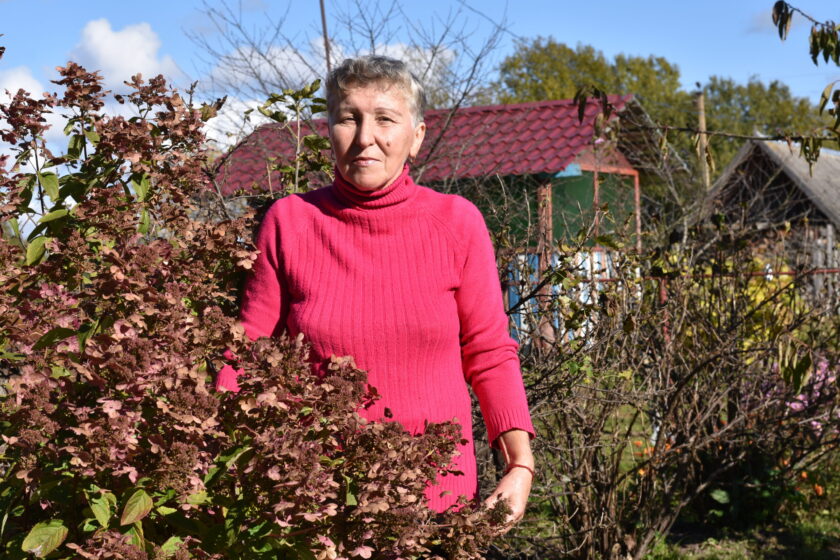 Вялікі чырвоны дом ля дарогі прыцягвае ўвагу ў любую пару года, бо з вясны па восень абкружаны мноствам кветак. У красавіку-маі ўвесь палісад патанаў у цюльпанах, якія змяніліся ліліямі і ружамі, а яны ў сваю чаргу гваздзікамі і гладыёлусамі. А адкрываюць і закрываюць сезон – крокусы. Хоць і намнога большыя восеньскія за сваіх ранніх братоў, аднак выглядаюць малышамі пад вялікімі пышнымі хрызантэмамі. Ды і дэкаратыўных кустоў тут нямала: мяняючы колер ад ружовага да фіялетавага, цвіце цяпер модніца-гартэнзія. І куды не зайдзі – за альтанку, да лазні ці на мяжу ўчастка – усюды разнаквецце і парадак.