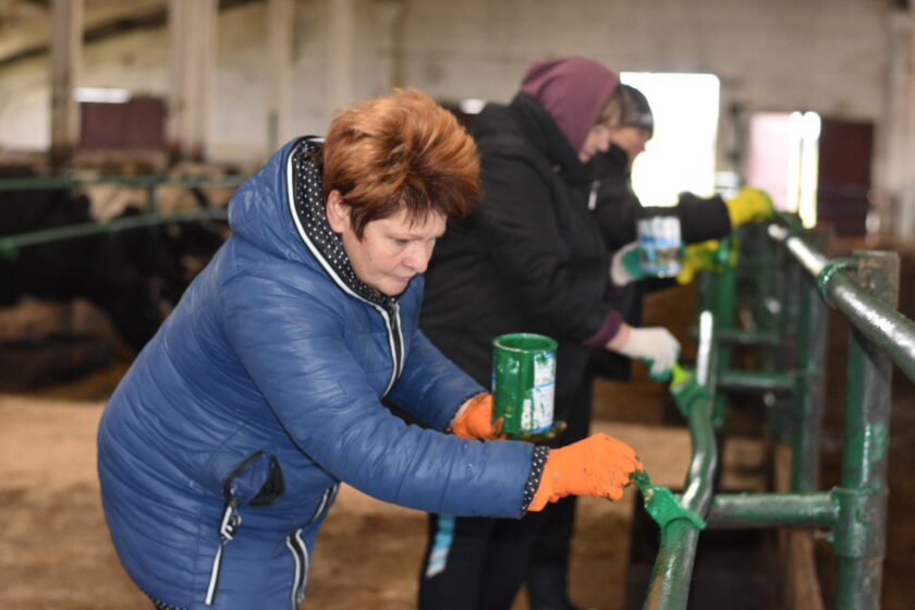 А вось на комплексе ў Завячэллі складаных будаўнічых работ не намячалася, таму кіраўнік справамі райвыканкама Дзмітрый Баратынскі і намеснік дырэктара “Сафійскіх дароў” па жывёлагадоўлі Аляксей Ладноў атрымалі ў сваё падпарадкаванне пераважна жаночую брыгаду. Зрэшты, у яе працавітасці і стараннасці сумнявацца не даводзілася: спецыялісты райвыканкама і цэнтра па забеспячэнні дзейнасці бюджэтных арганізацый фарбавалі памяшканні і стойлавае абсталяванне, ачышчалі тэрыторыю ад арганікі і смецця.