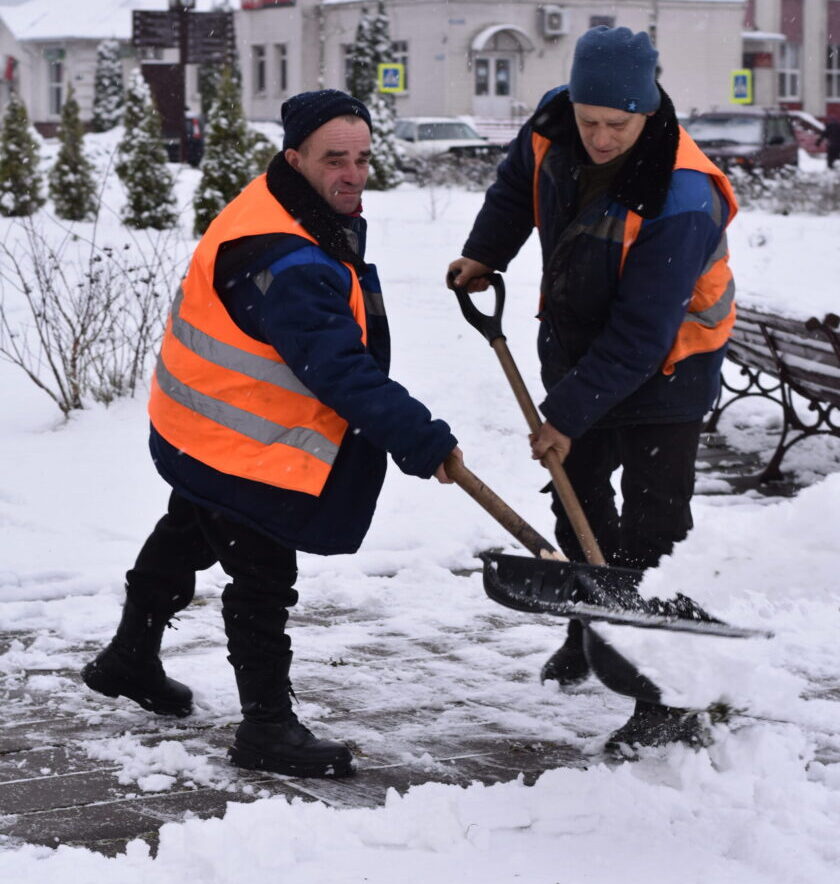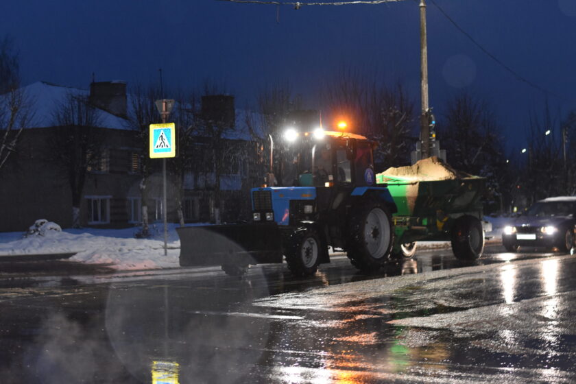 Раней звычайнага бяруцца за справу і шасцёра прыбіральшчыкаў тэрыторыі ўчастка добраўпарадкавання. “Каб людзям было зручна ісці на работу, па тратуарах цэнтральных вуліц зранку праязджаюць маленькія трактары – спачатку адзін з лапатай і шчоткай, за ім другі – з раскідвальнікам сумесі. Мы ж тым часам расчышчаем пешаходныя пераходы, ліўнёўкі, шляхі, што вядуць да школы, іншыя бойкія месцы, – тлумачыць работніца ўчастка Кацярына Мелкамукава. – Хоць выпала яшчэ не так шмат снегу, аднак у пачатку тыдня ўжо вывезлі з плошчы першыя чатыры машыны зімовага грузу”.