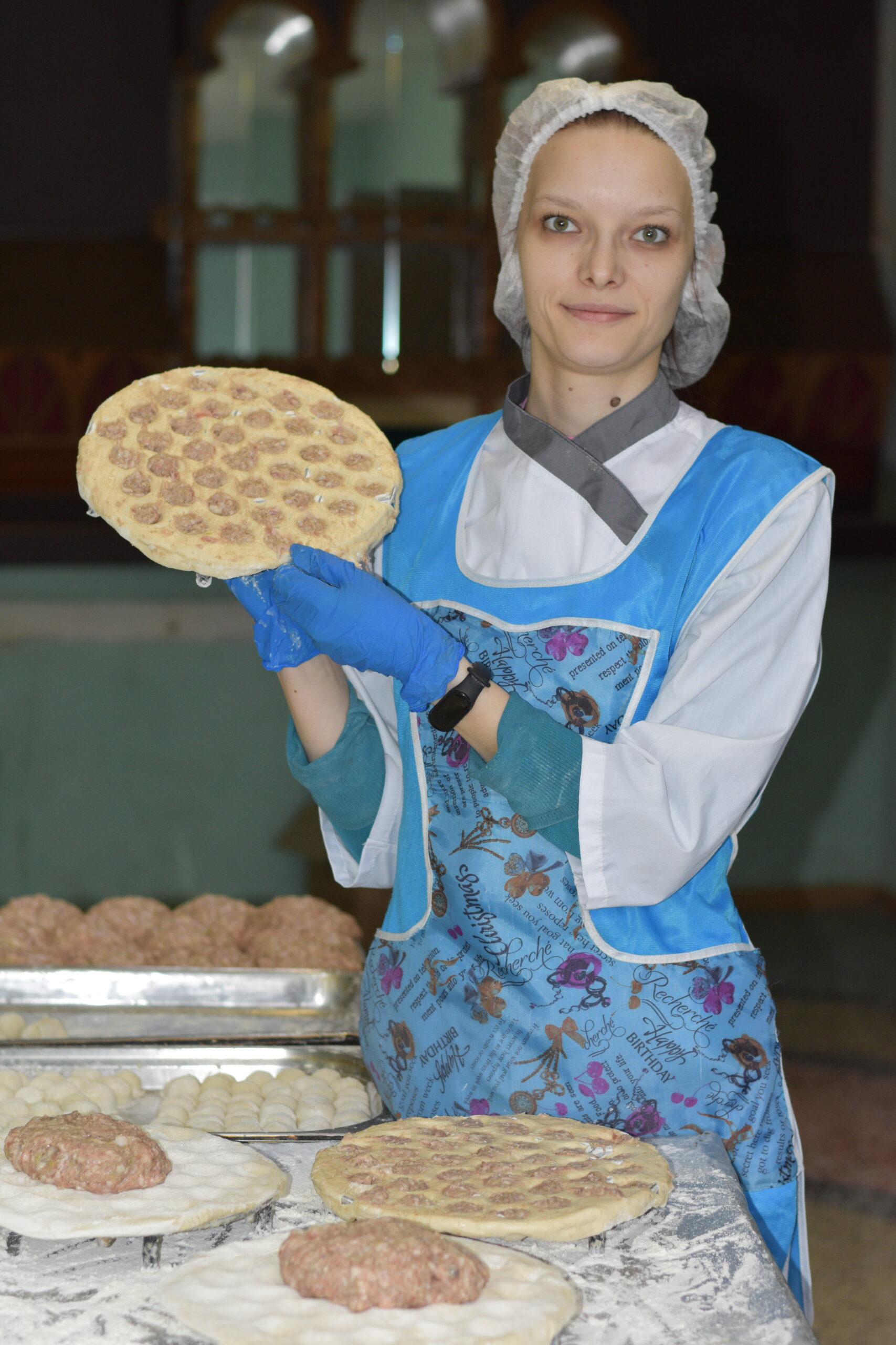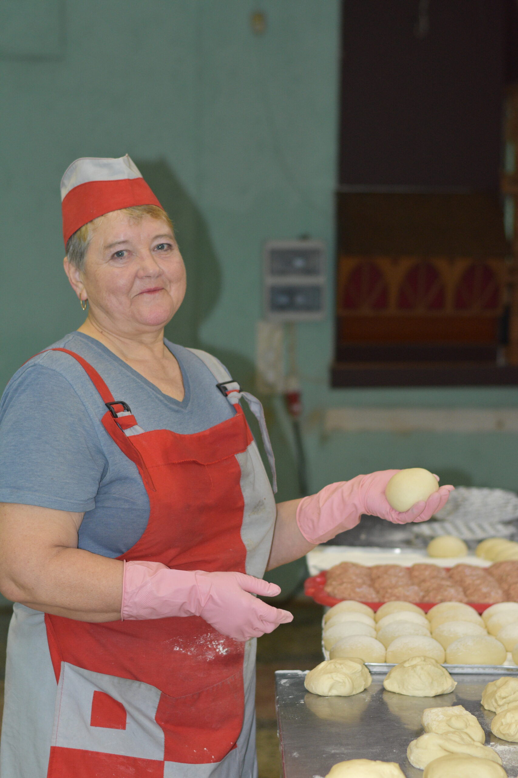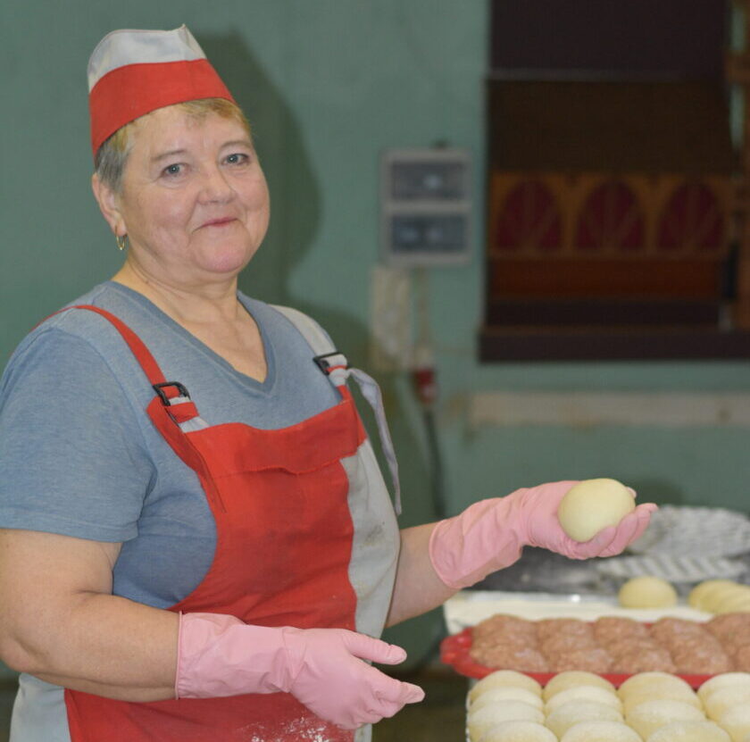 “Дакшычане таксама любяць нашы пельмені, хоць і самі выпускаюць”, – не без гонару зазначае повар Ірына Кісель, а яе маладзейшая калега Ганна Захарэнка (на здымку) дадае: “Яны ж лепяцца ўручную, з любоўю, як рабілі нашы матулі і бабулі”.