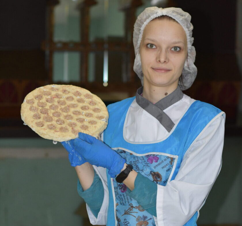Цеста хоць і без дражджэй, аднак падымаецца. На бляхах ляжалі мучныя кругляшы па 250 грамаў і мясныя па 270. Фаршу больш, тым не менш ён умяшчаецца з-за эластычнасці тонка раскачаных “блінцоў”.