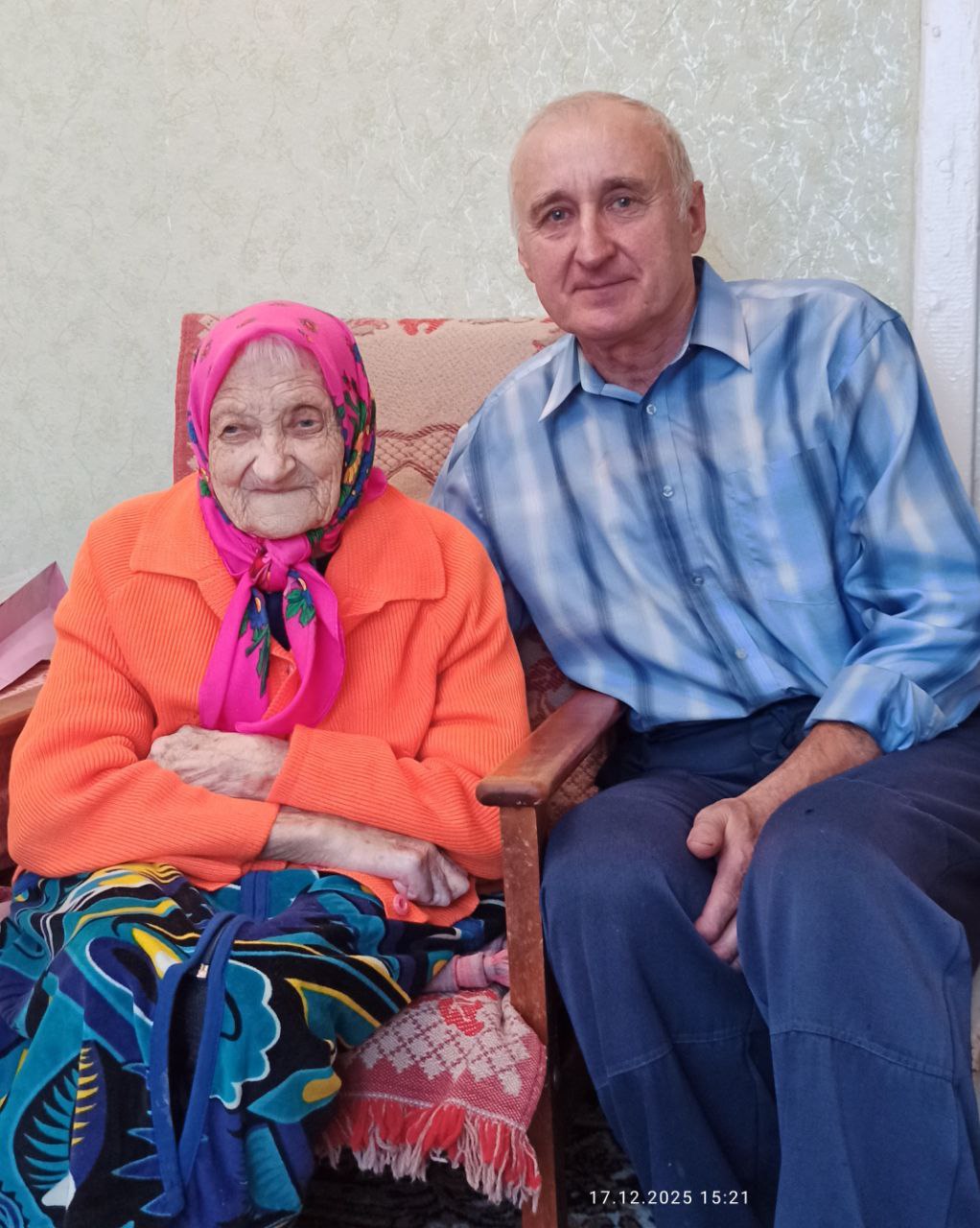 Падарункі юбіляршы прывезлі старшыні Жарскага сельсавета Святлана Міхейка, раённай ветэранскай арганізацыі Ніна Васілеўская і пярвічкі Старога Сяла Віктар Стрыжонак, а таксама спецыяліст ТЦСАН Таццяна Коршун.
