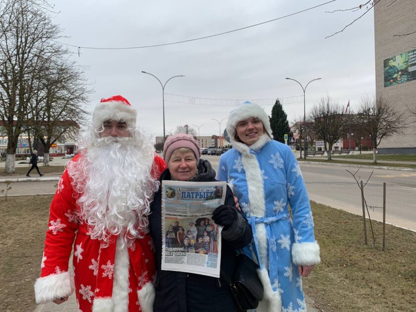 Праводзіць у апошнія дні года сустрэчу з чытачамі – добрая традыцыя “Патрыёта”. І ў гэты раз, пераўвасобіўшыся ў навагодніх персанажаў, мы прайшліся па цэнтральнай вуліцы Ушач, каб прывітаць нашых падпісчыкаў і пачуць іх меркаванні пра “раёнку”.