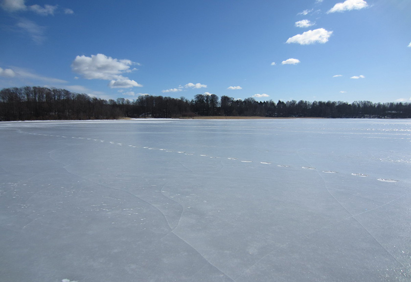 И так, прежде чем спуститься на лед следует надеть спасательный жилет, взять с собой веревку длиной 1,5-2м и шест (доску) все то на чём можно будет удержаться на поверхности, проверить место, где лед примыкает к берегу – могут быть промоины, снежные надувы закрывающие их. Помните, в устьях рек прочность льда ослаблена из-за течений.