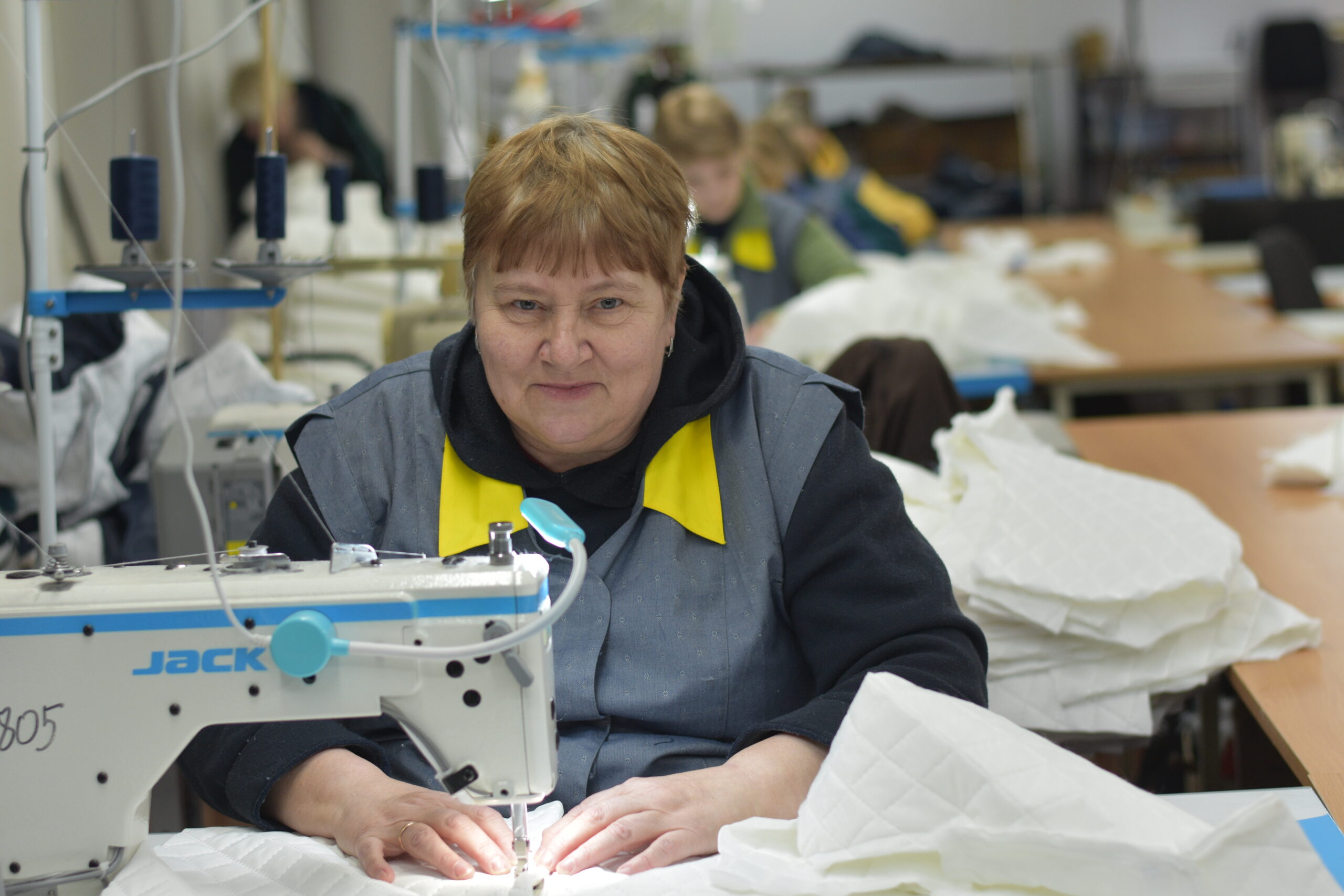 Цішыні ў швейным цэху не можа быць у прынцыпе. Вось і на гэты раз на Ушацкім участку Полацкага філіяла ААТ “Магатэкс” стракаталі машынкі, а работніцы засяроджана сачылі за бягучай строчкай. Як і ў чэрвені 2023-га, у пакеты пакаваліся сінія камізэлькі – абсалютна такую ж мадэль выпускаюць для маскоўскіх заказчыкаў і зараз. Толькі вось колькасць прадукцыі значна вырасла – за месяц шыюць 1700 камізэлек і тысячу штаноў, што сведчыць пра выхад вытворчасці на зусім іншую ступень развіцця.