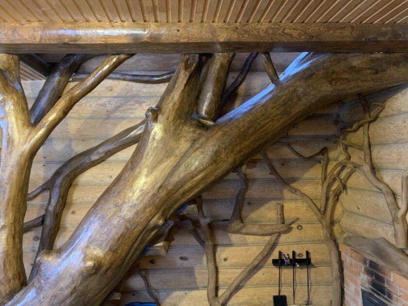 Гаспадары аказаліся не толькі нястомнымі працаўнікамі, а і таленавітымі дызайнерамі. Паклапаціліся, каб стыль адпавядаў назве: гэта бачна і ў колерах, і ў матэрыялах, і ў мэблі – ніякага пластыку, усё натуральнае, з бярвення. Узяць, напрыклад, шасціметровае дрэва, якое праходзіць у доме праз абодва паверхі. Старая чорная вольха расла на ўчастку і была прызнана аварыйнай – але пайшла не на дровы, а стала стыльным элементам дызайну: вялізны ствол у хату цягнулі праз разабранае акно аж 15 чалавек! Усе пакоі, санвузлы – утульныя і стыльныя, а якая тут лазня! На сядзібе і зімой цудоўна, а што ўжо казаць пра лета: абсталяваны пірсы, закуплены лодкі, сапборды… Па добраўпарадкаванні зроблена многае, яшчэ больш – у планах. Вось толькі агароджы ў іх няма – і не будзе: наўмысна ад яе адмовіліся, каб адчуванне свабоды заставалася.