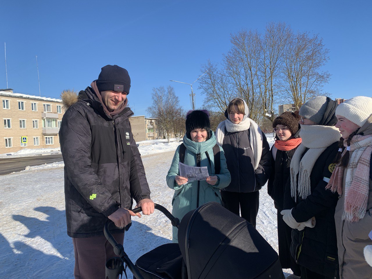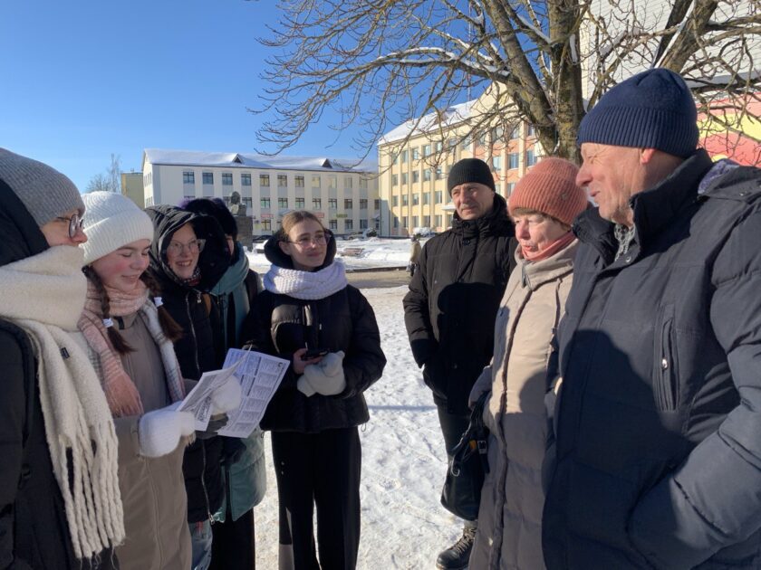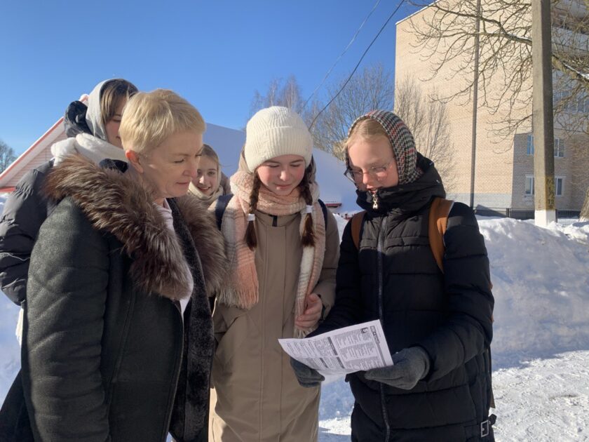 Першай на шляху нам трапілася настаўніца нашай школы Таццяна Леанідаўна Шарына – вось і выдатна, пратэсціруем задумку на знаёмым добразычлівым чалавеку. Цікава, як справіцца педагог, што выкладае фізкультуру, з заданнем па лінгвістыцы? “Бусел”, “цыбуля”, “парасон”, “ліхтар” – ніякіх праблем з перакладам беларускіх слоў на рускую мову ў нашай суразмоўцы не ўзнікла. Як і з пытаннем, якую прадукцыю выпускаюць айчынныя кампаніі “Віцьба”, “Марка”, “Камунарка” – Таццяна Леанідаўна патлумачыла, што сама неаднойчы купляла віцебскі абутак, ну а цукерку прыгаданай кандытарскай фабрыкі атрымала ад нас у якасці прыза.