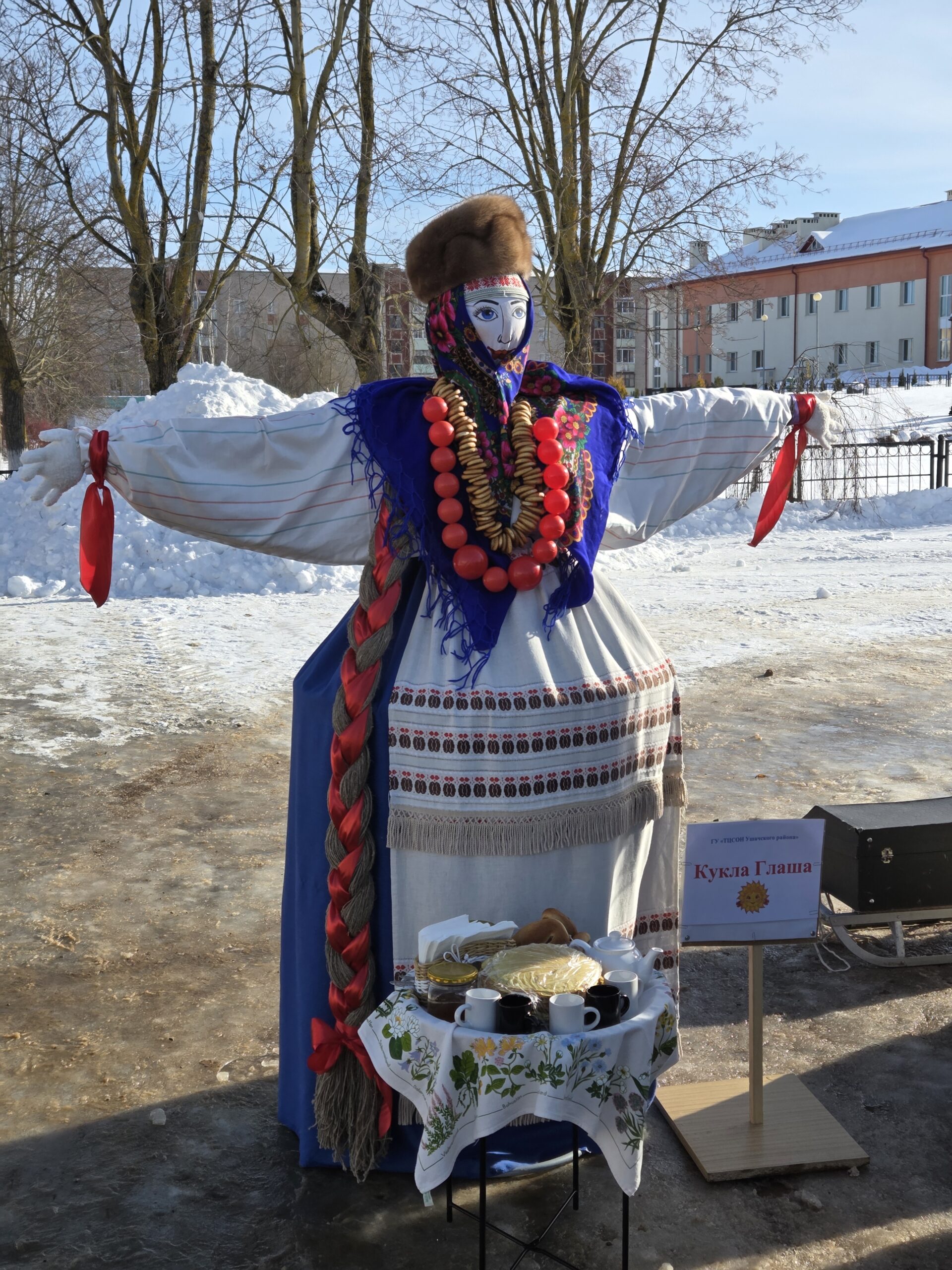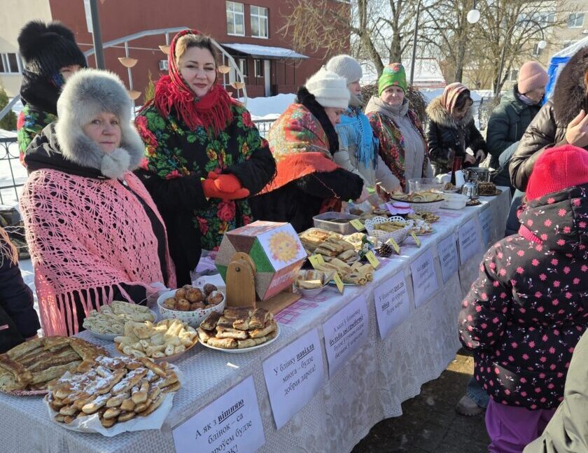 Блінамі на розны густ, з усякімі начынкамі: грыбамі, каўбасой, варэннем – усе віды нават і не пералічыць – частавалі ўшачан гаспадыні з культустаноў раёна. Прапаноўваў гарачую гарбату, юшку і іншыя пачастункі народны калектыў “Прысмакі”.