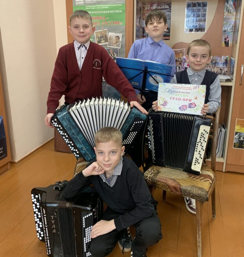 …Мы завіталі ў школу мастацтваў і папрасілі хлопчыкаў крыху расказаць пра сябе. “Для мяне баян – сямейны інструмент, – патлумачыў Слава Бакан. – Раней у гэтым класе старэйшы брат Мікалай займаўся, таксама на многіх конкурсах пабываў, я з ім калісьці на “Вішнёвы фестываль” у Глыбокае ездзіў у якасці балельшчыка, ну а зараз эстафету пераймаю. Коля ж паступіў у Полацкі педагагічны каледж на музычную спецыяльнасць”. У сям’і Сакаловых з музыкай сябруюць усе: старэйшая Яна іграе на фартэпіяна і укулеле, Аня – цымбалістка, нават маленькая Марыйка актыўна музіцыруе на ксілафончыку. А вось Мікіта Волах сямейных музычных традыцый не мае – але спадзяецца, што з яго яны і пачнуцца.