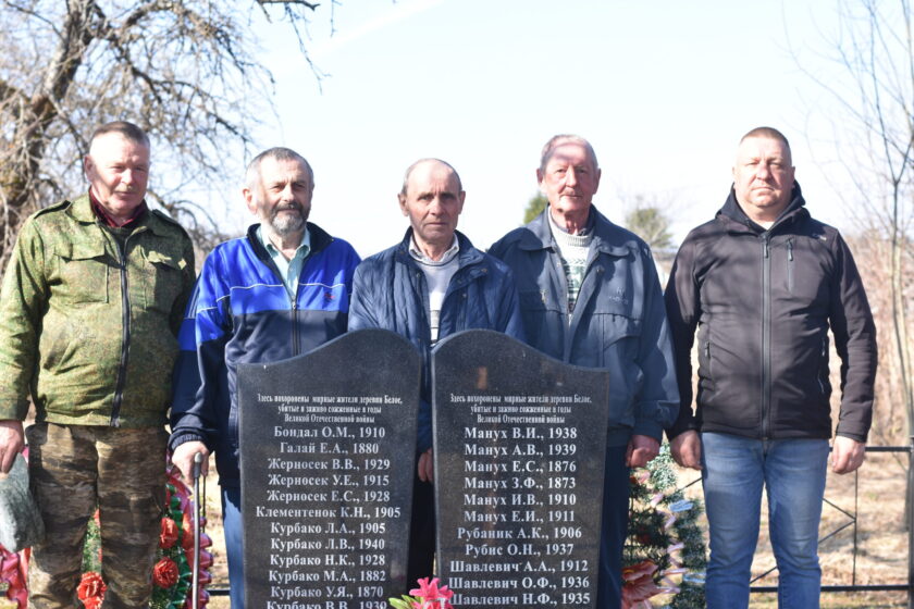 Гісторыю чорнага дня Белага добра ведае старшыня раённага аддзялення партыі “Белая Русь” Таццяна Анатольеўна Глінская, у гэтай вёсцы жыве яе маці. Не раз расказвала сваім вучням аб трагедыі жыхарка Мосара Таццяна Уладзіміраўна Ліленка, якая была на мітынгу з сям’ёй. З дачкой прыехала на мерапрыемстве супрацоўнік ветстанцыі Аксана Гаўрылаўна Гардзіёнак… Ля абеліска на сонцы “гарэлі” сотні чырвоных гваздзікоў – каб не сціралася гістарычная праўда аб далёкай і адначасова блізкай Вялікай Айчыннай вайне.