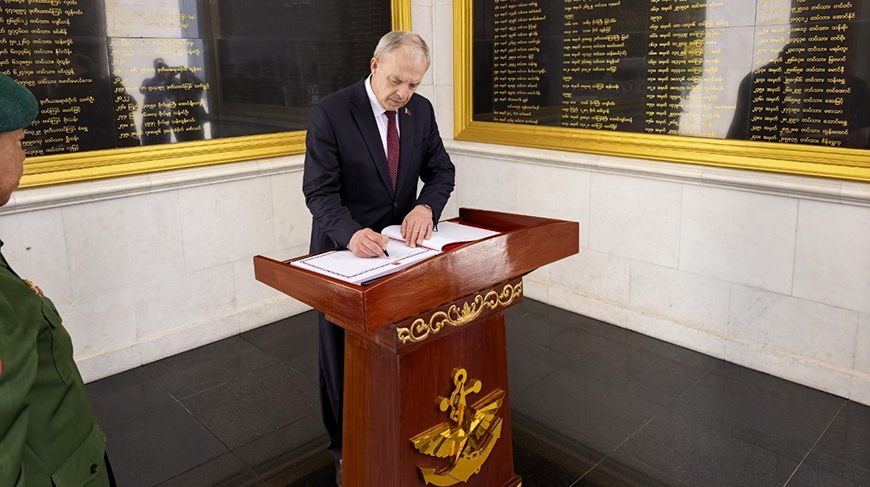 Визит Игоря Сергеенко начался с возложения цветов к Мемориалу павшим героям в столице государства Нейпьидо, как дань памяти военнослужащим и мирным гражданам, героически погибшим в борьбе за независимость, суверенитет и территориальную целостность страны, а также при проведении контртеррористических операций. Во время посещения мемориала Игорь Сергеенко оставил запись в книге почетных гостей.