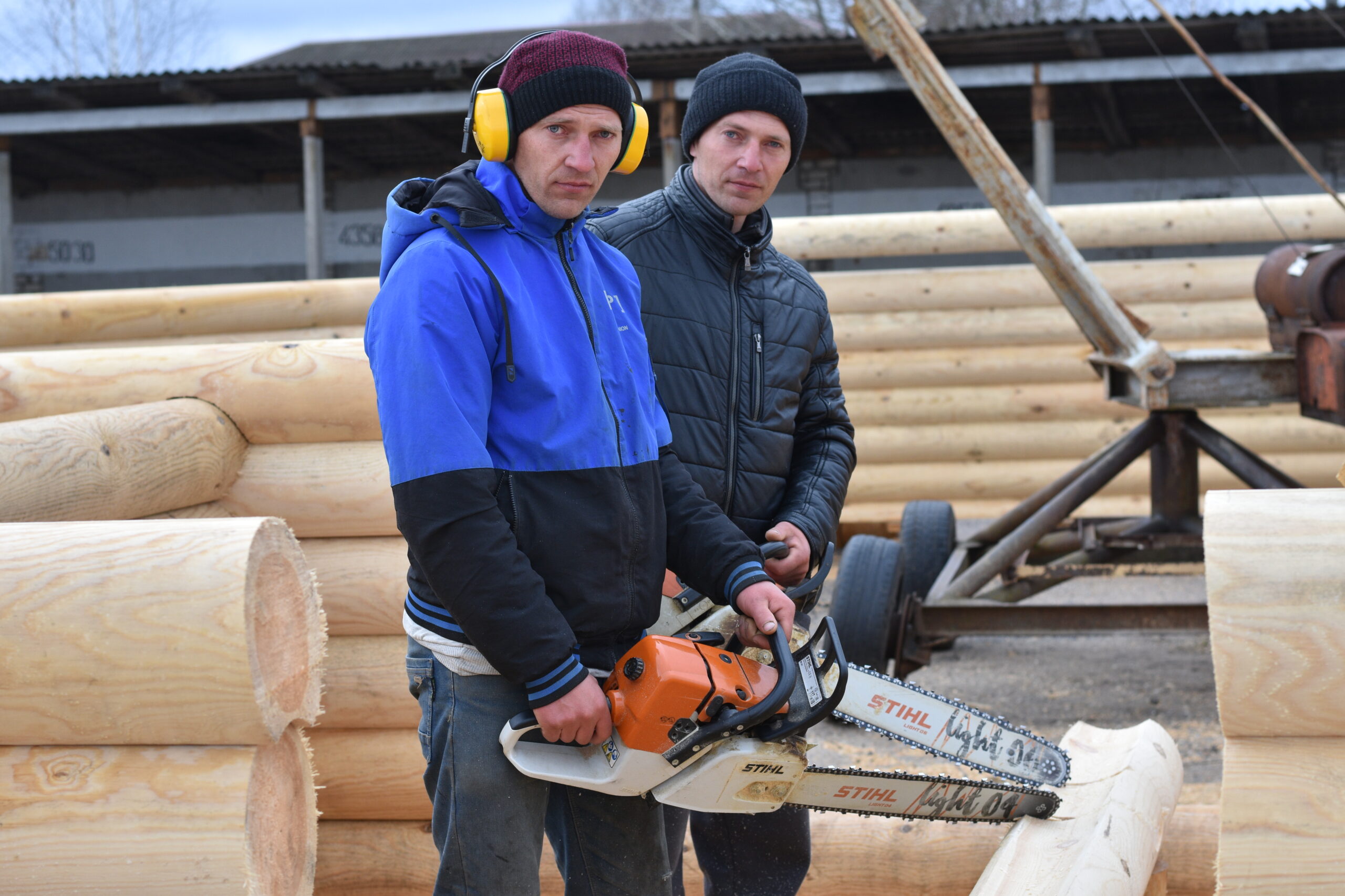 Распачаліся і будаўнічыя работы. Лясгас ацыліндраваў неабходную колькасць бярвёнаў, а браты Дзмітрый і Вадзім Зеленікі ўжо некалькі тыдняў “звязваюць іх у замкі” згодна з існуючым праектам. Ручная работа ў гэтым выпадку незаменная – усе вуглавыя чашы несіметрычныя – кожная выбіраецца пілой па папярэдніх замерах. Хоць і не з’яўляюцца сталяры актыўнымі вернікамі – храм наведваюць па вялікіх святах, аднак узвядзенне святыні лічаць справай боскай і выконваюць яе на сумленне і па расцэнках, далёкіх ад рыначных.