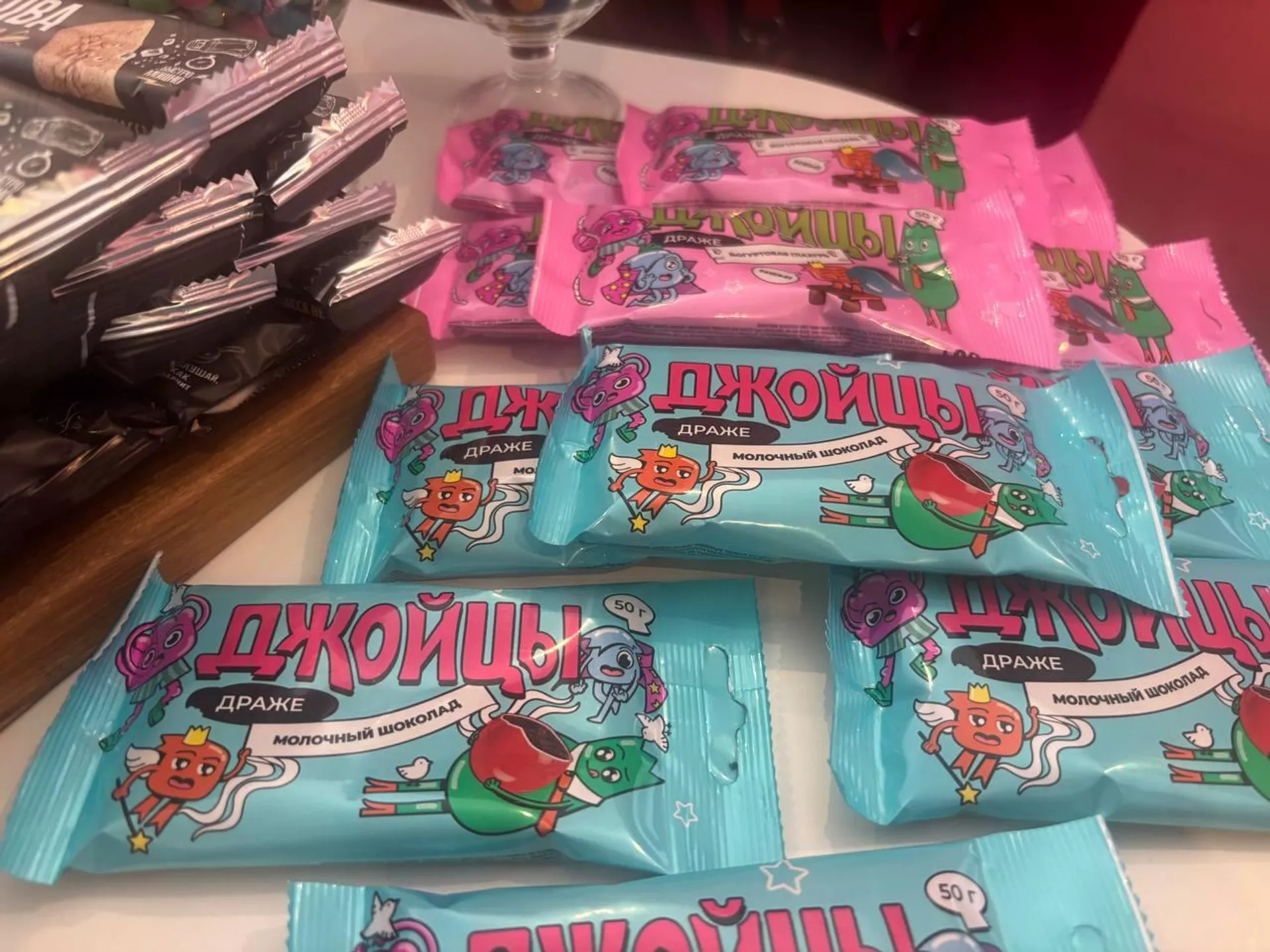 Он добавил, что новинка будет выходить в 50-граммовых упаковках в двух вариантах – с молочным шоколадом в йогуртовой или цветной глазури. Новое драже называется «Джойцы».