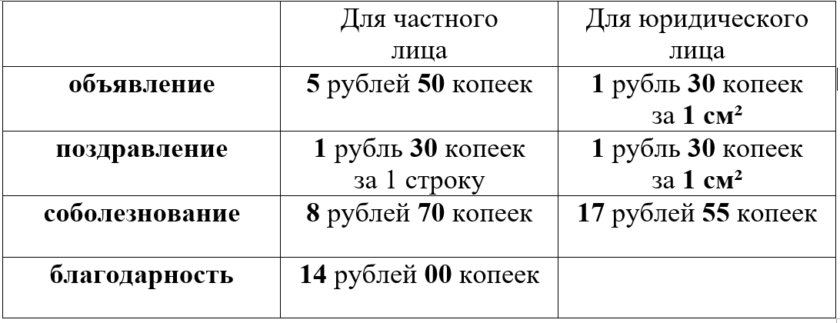 Цены на размещение рекламы на страницах газеты с 1 января 2026 года